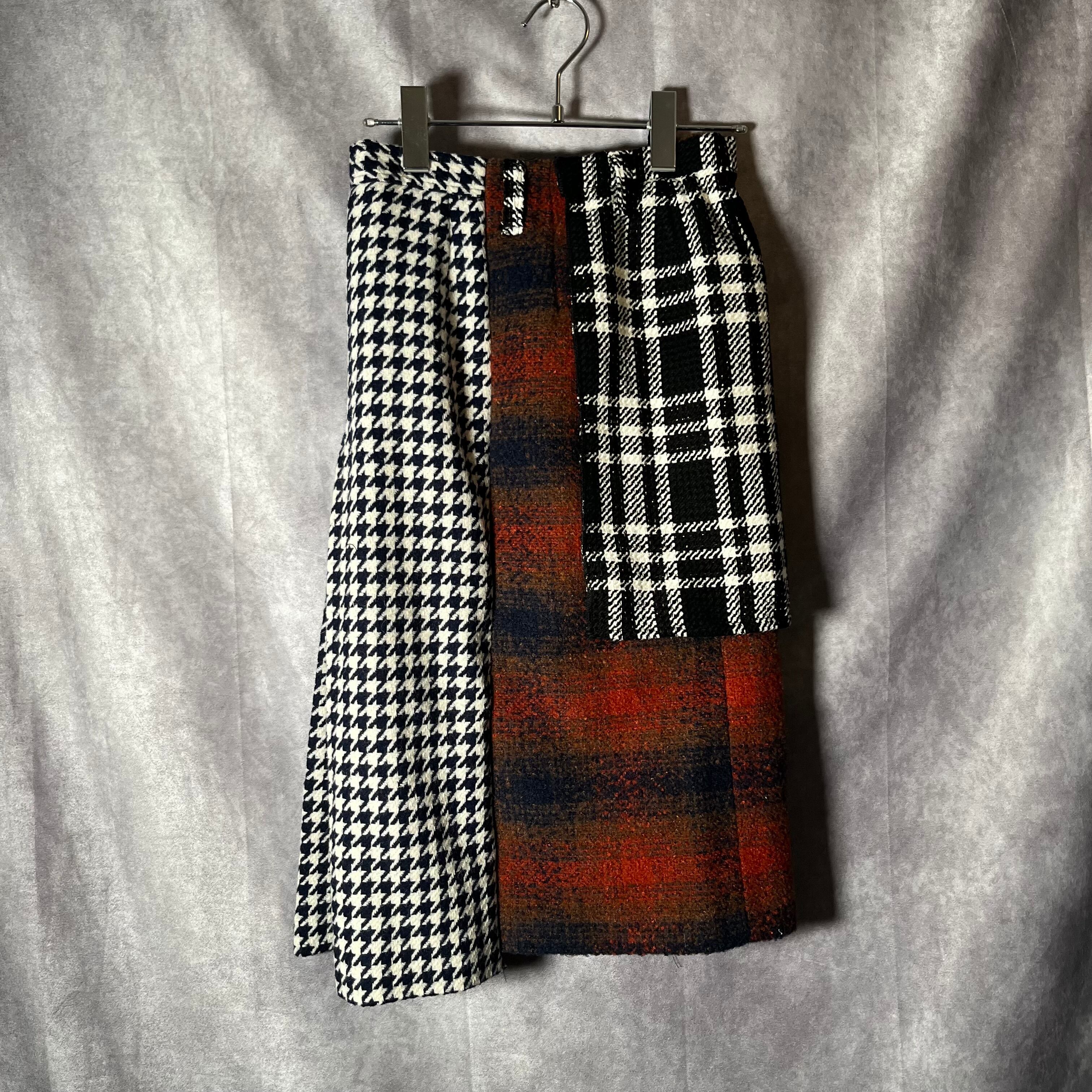 写真にて状態の確認をお願い確認致します。 スカート3枚を繋ぎ合わせて製作しております。 デニムで巻いて着用するスタイルがおすすめです。 □実寸サイズ □ ウエスト free 総丈65 ※実寸につきまして多少の誤差はご了承ください。 ※表記サイズだけではなく実寸のサイズをご確認ください。