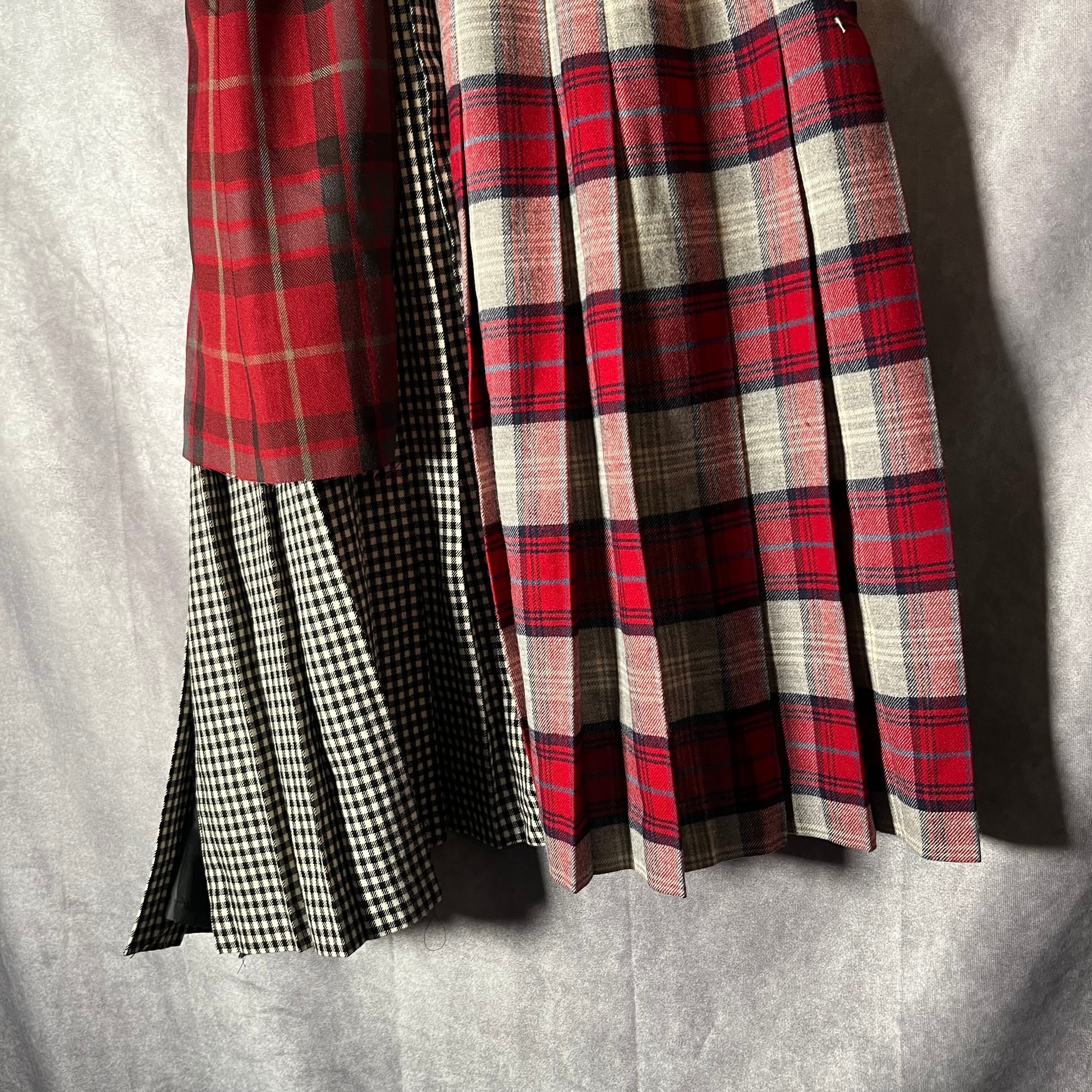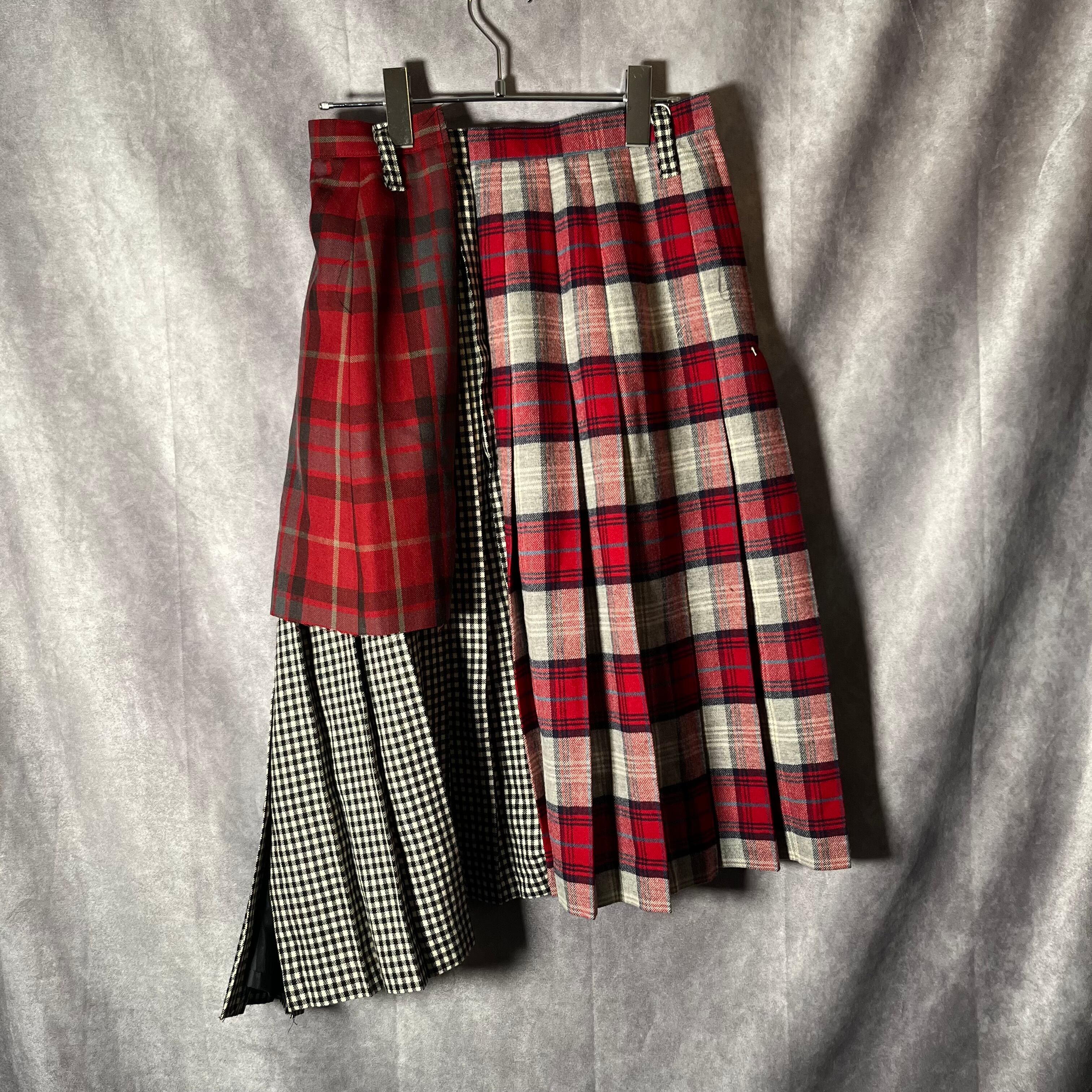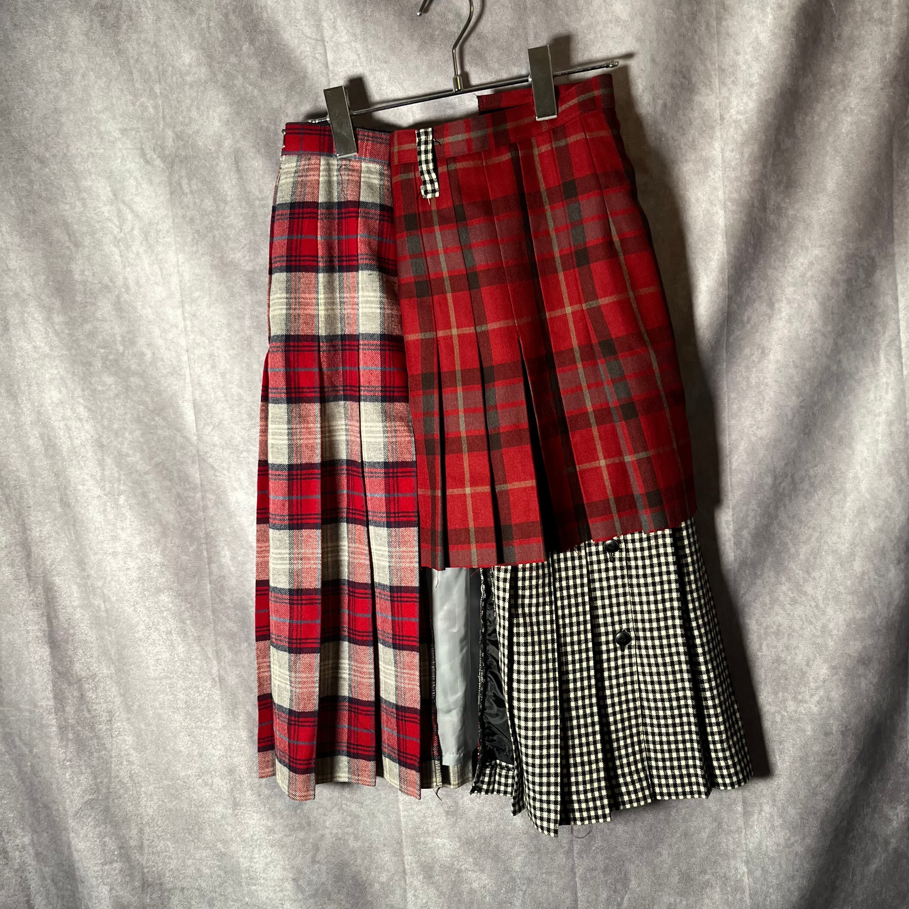 写真にて状態の確認をお願い確認致します。 スカート3枚を繋ぎ合わせて製作しております。 デニムで巻いて着用するスタイルがおすすめです。 □実寸サイズ □ ウエスト free 総丈65 ※実寸につきまして多少の誤差はご了承ください。 ※表記サイズだけではなく実寸のサイズをご確認ください。