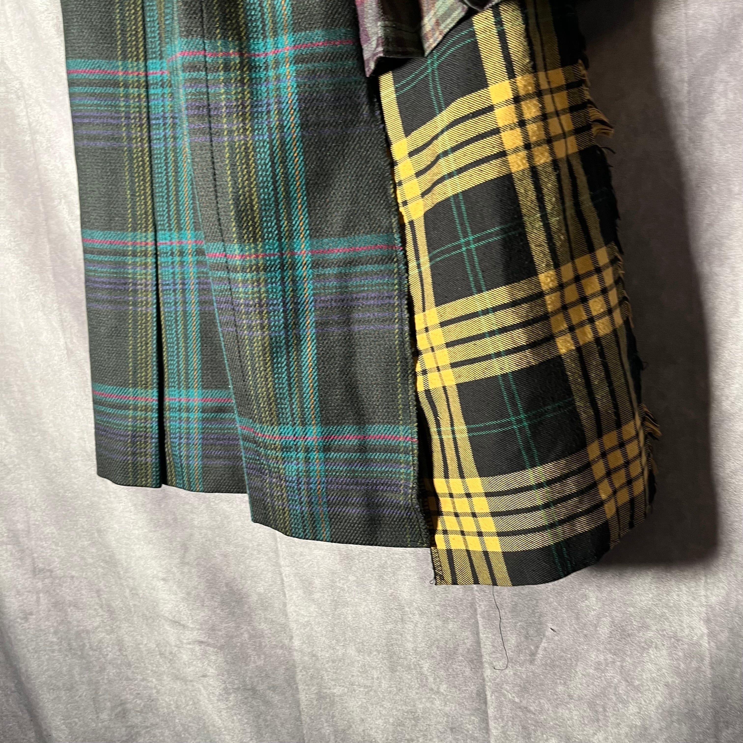 写真にて状態の確認をお願い確認致します。 スカート3枚を繋ぎ合わせて製作しております。 デニムで巻いて着用するスタイルがおすすめです。 □実寸サイズ □ ウエスト free 総丈68 ※実寸につきまして多少の誤差はご了承ください。 ※表記サイズだけではなく実寸のサイズをご確認ください。