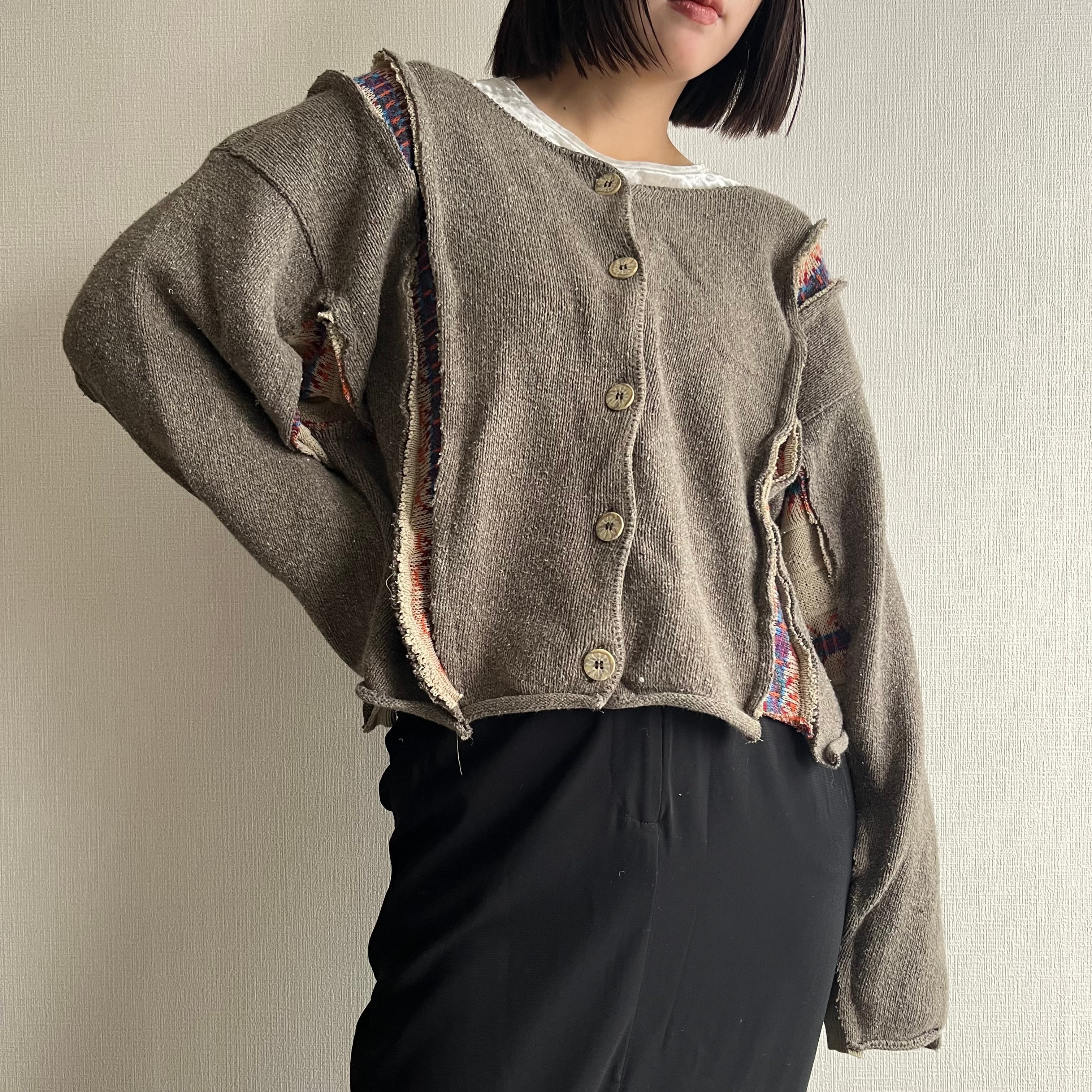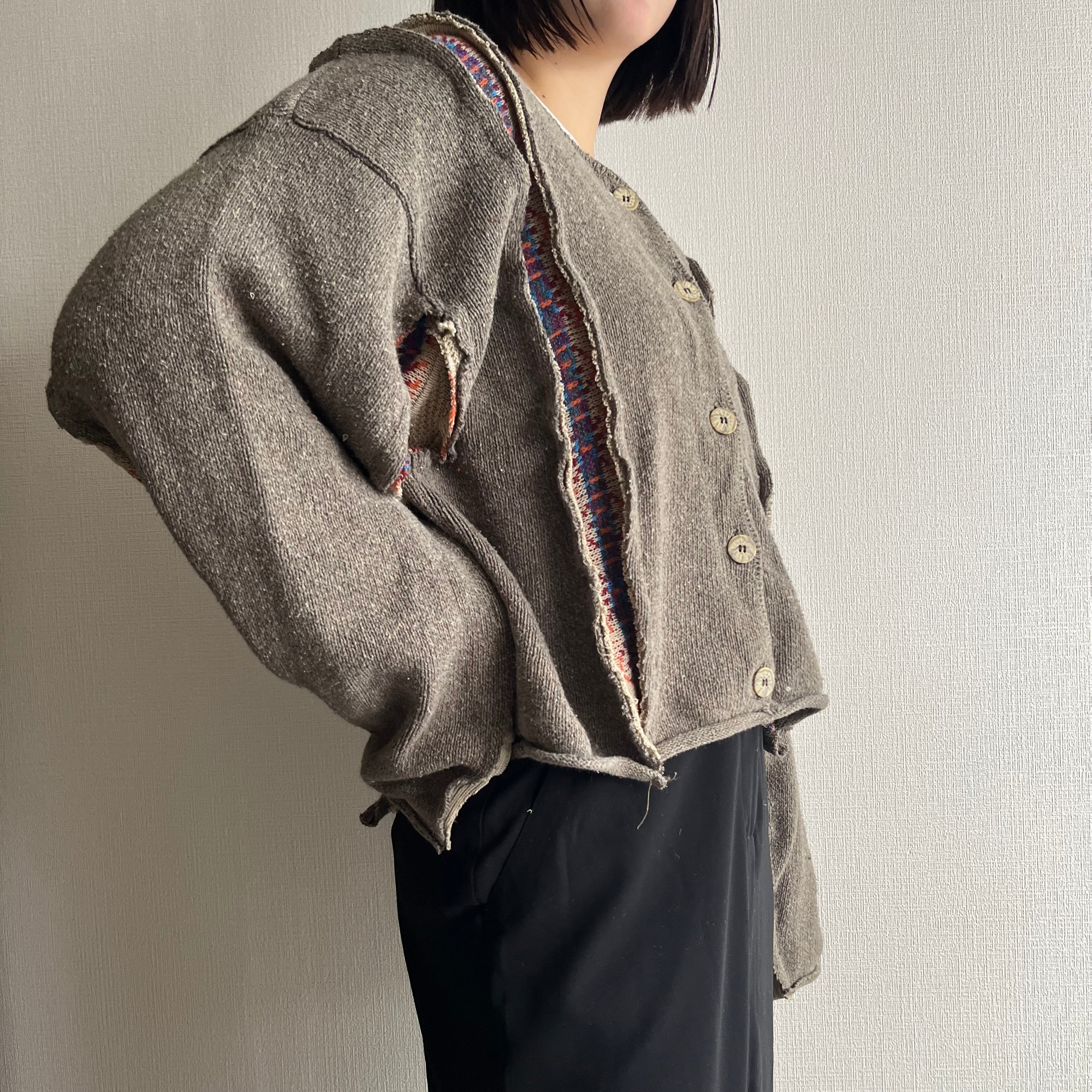 異なるニットを解体し、あえて不揃いのまま再構築した一点物。