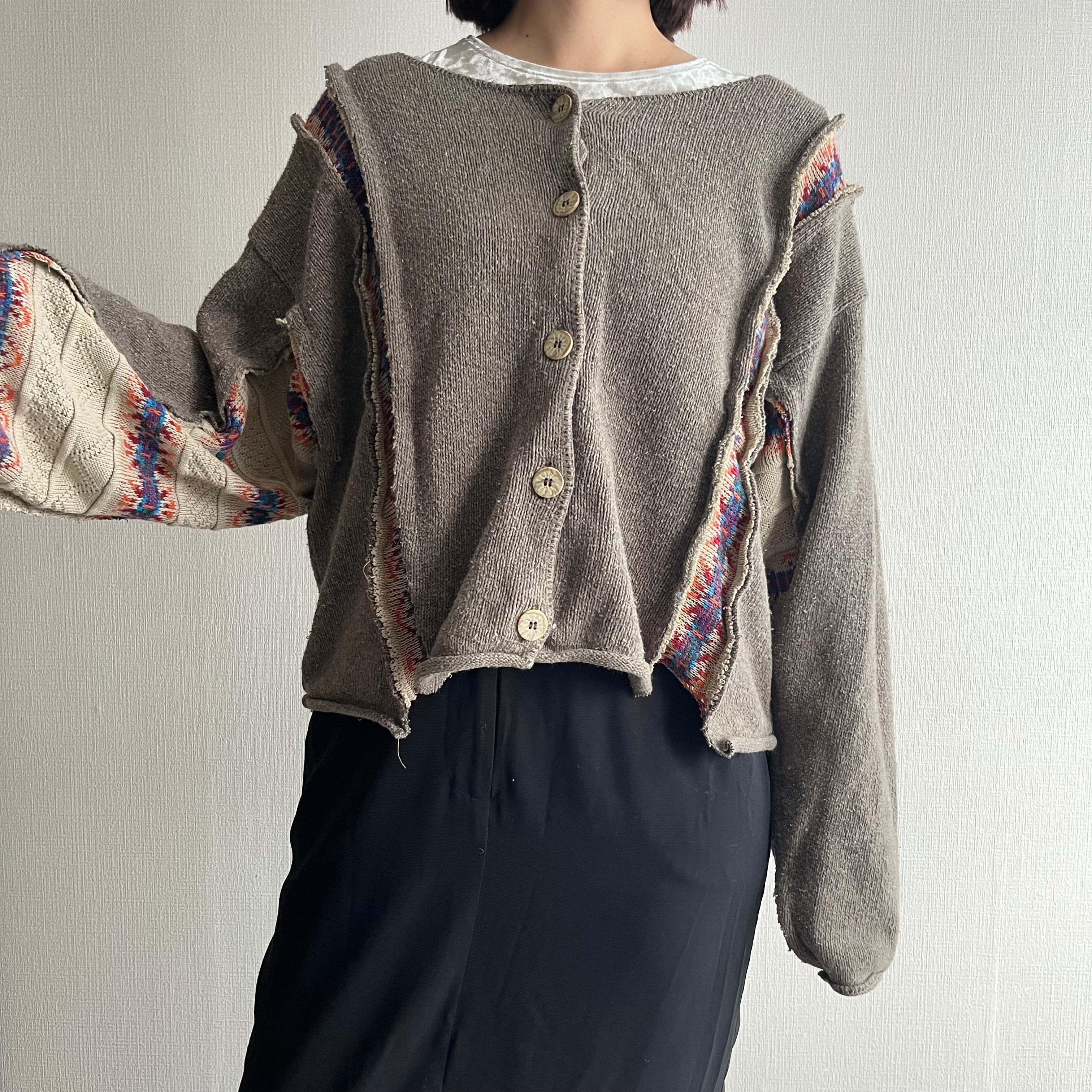 誰かの思い出をつなぎ合わせるように、新しい形として再生されたリメイクニットです。