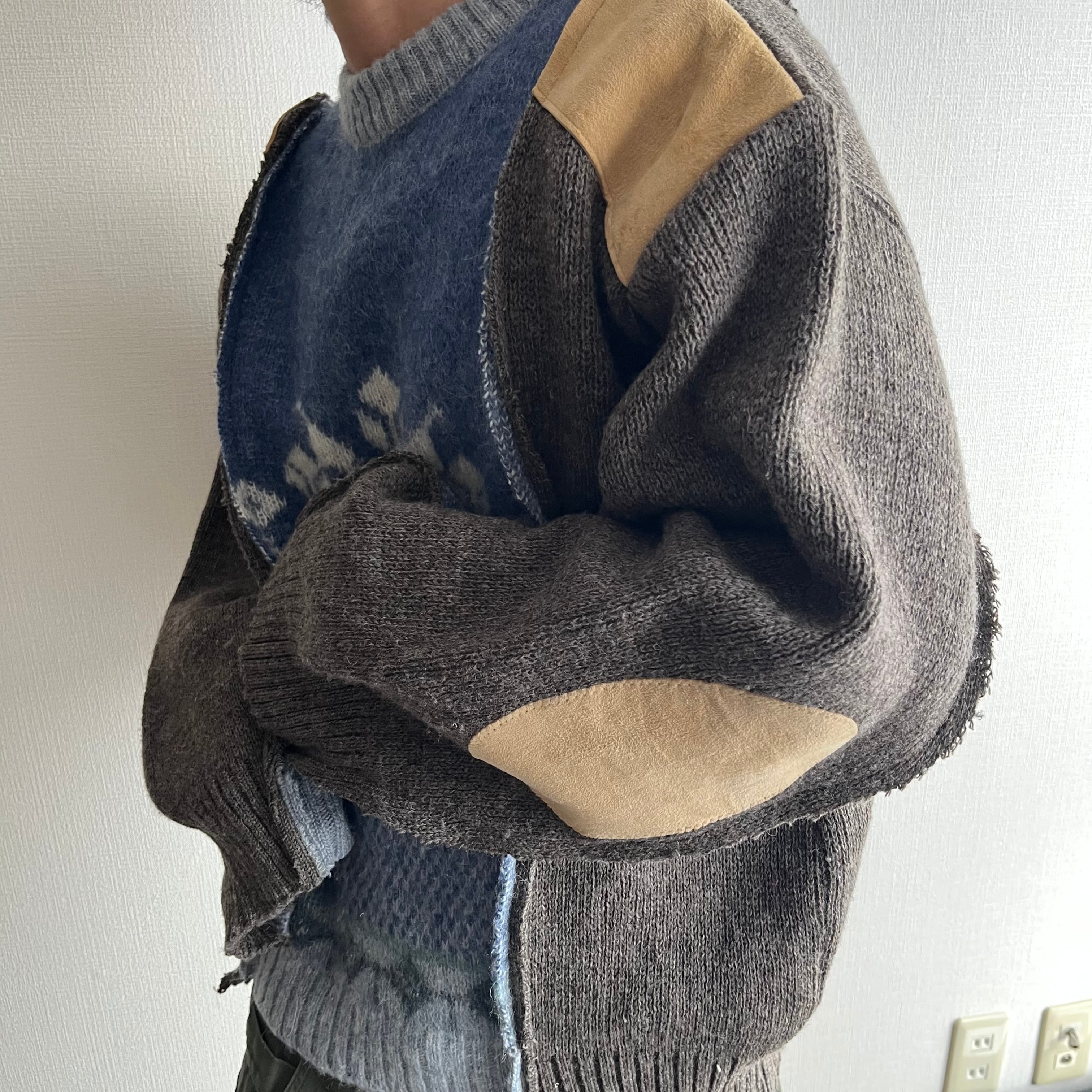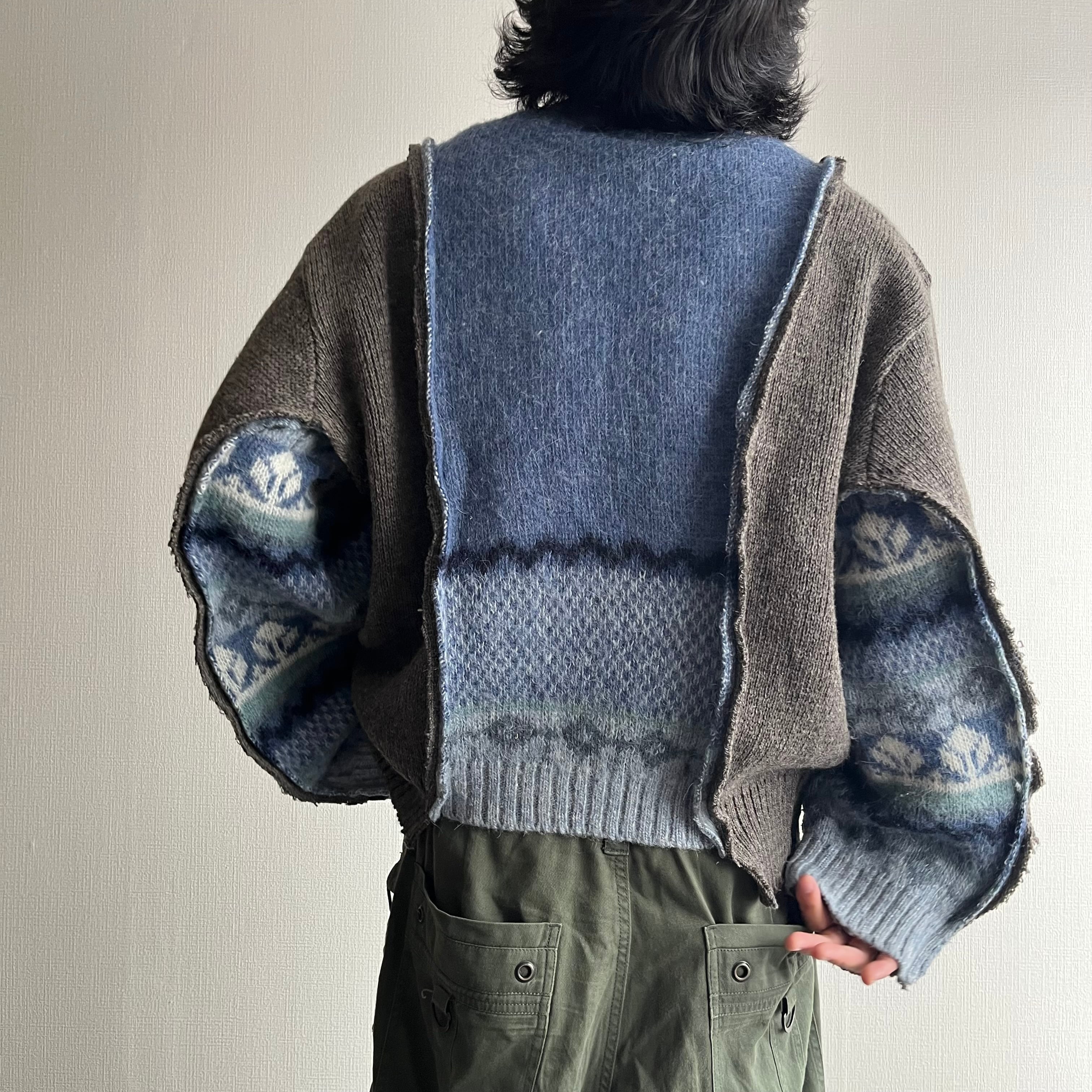異なるニットを解体し、あえて不揃いのまま再構築した一点物。