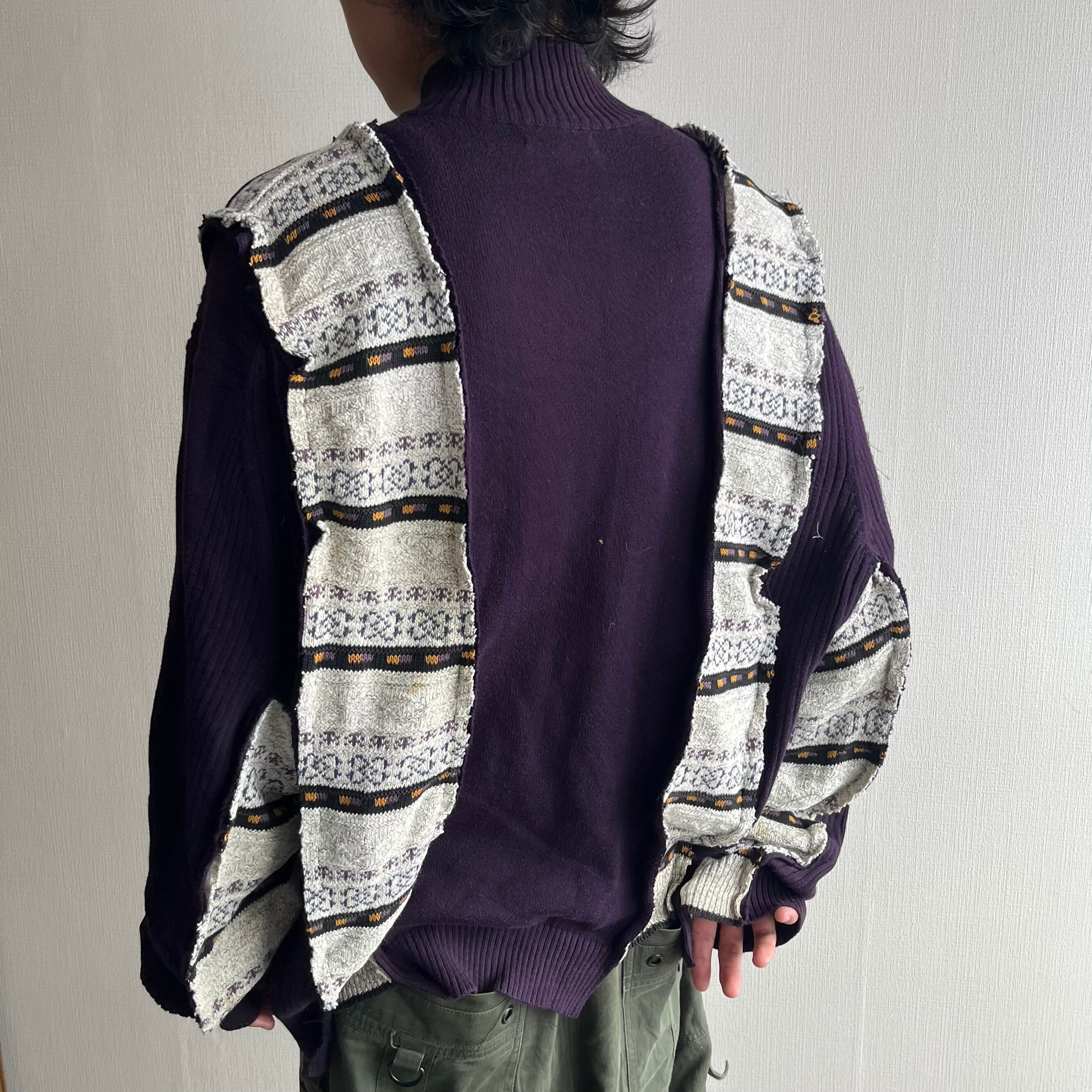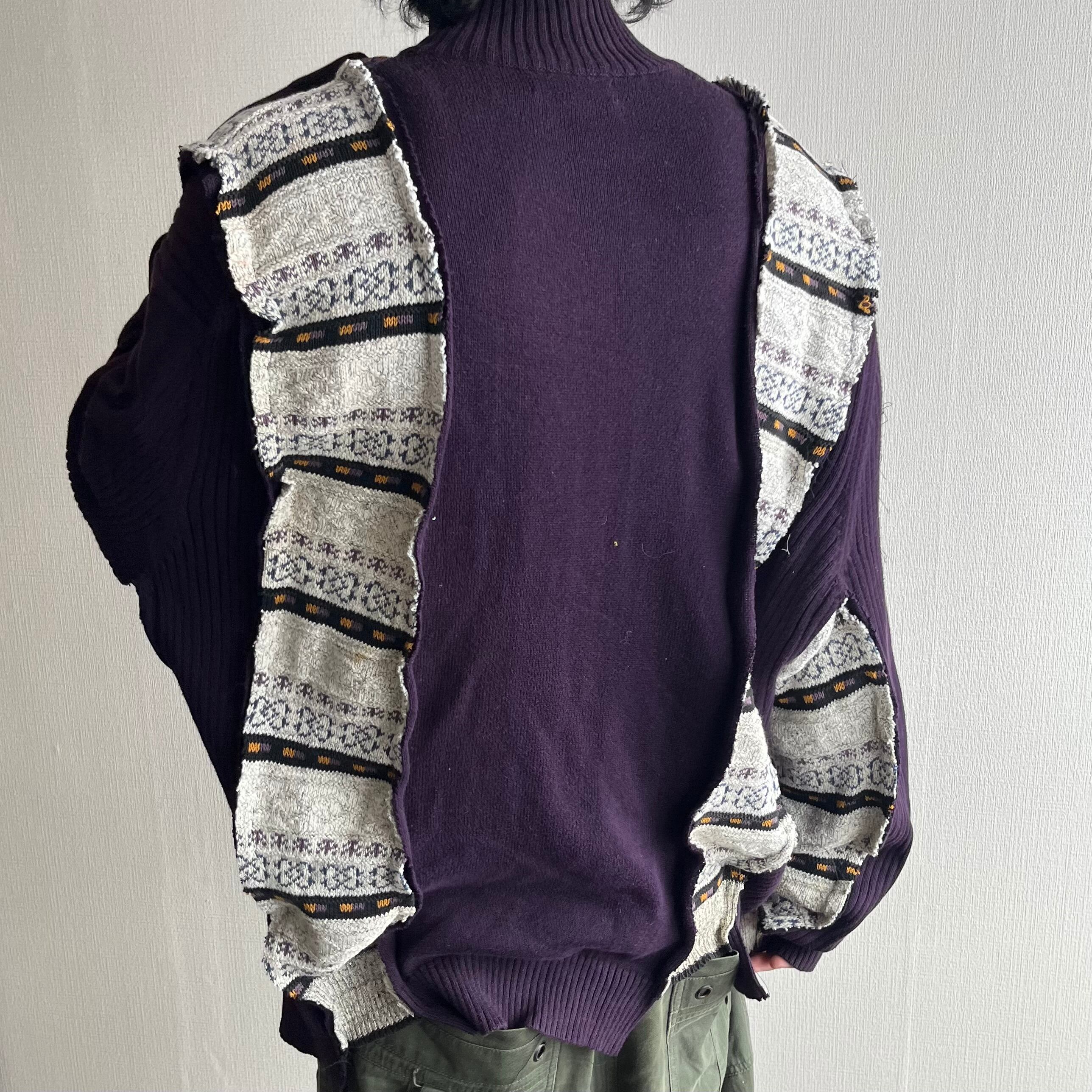 異なるニットを解体し、あえて不揃いのまま再構築した一点物。