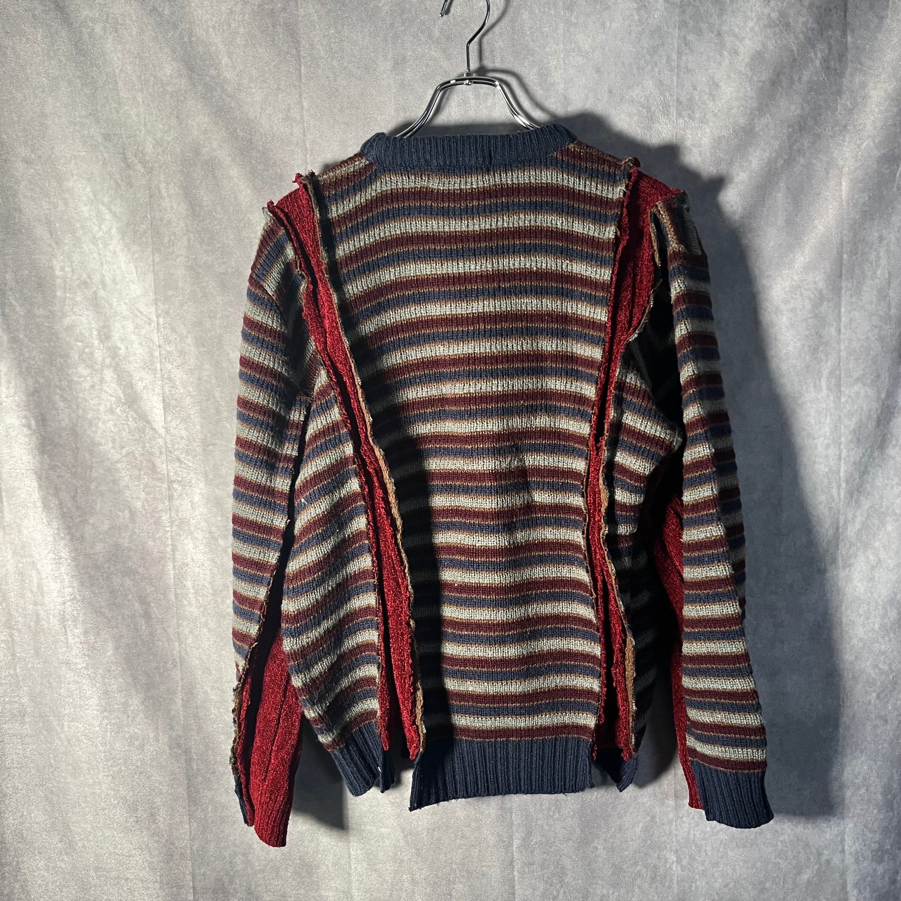 異なるニットを解体し、あえて不揃いのまま再構築した一点物。
