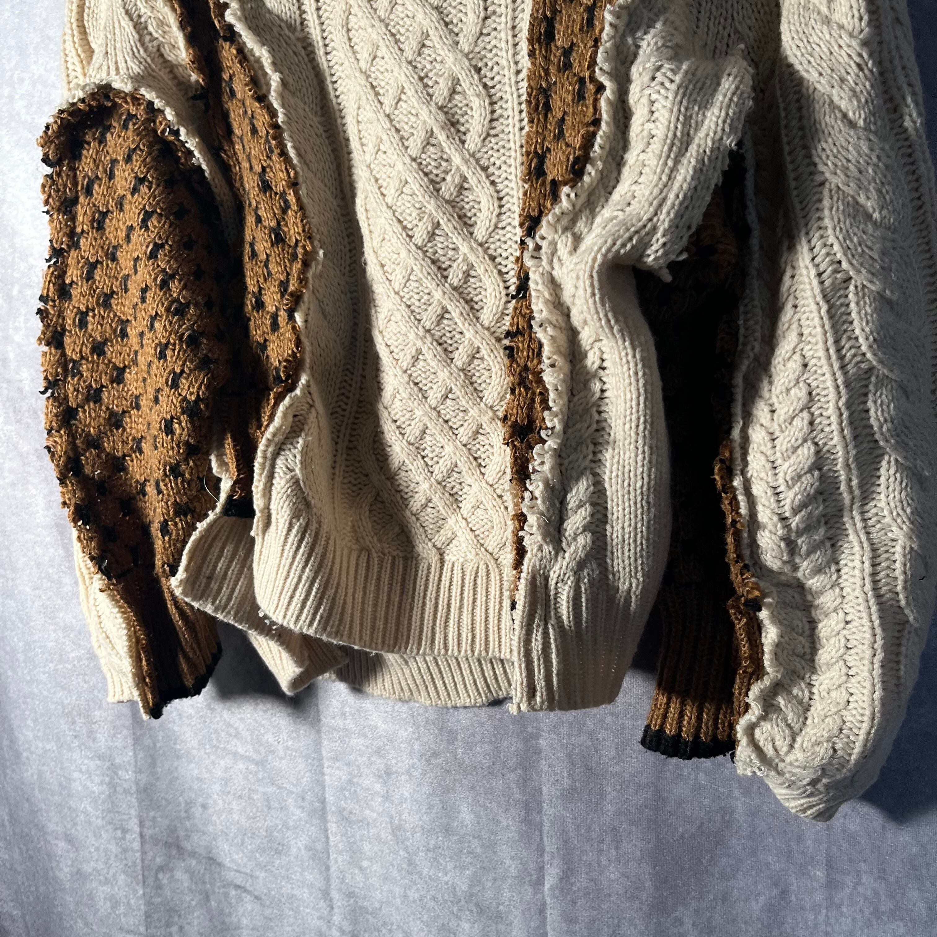 異なるニットを解体し、あえて不揃いのまま再構築した一点物。