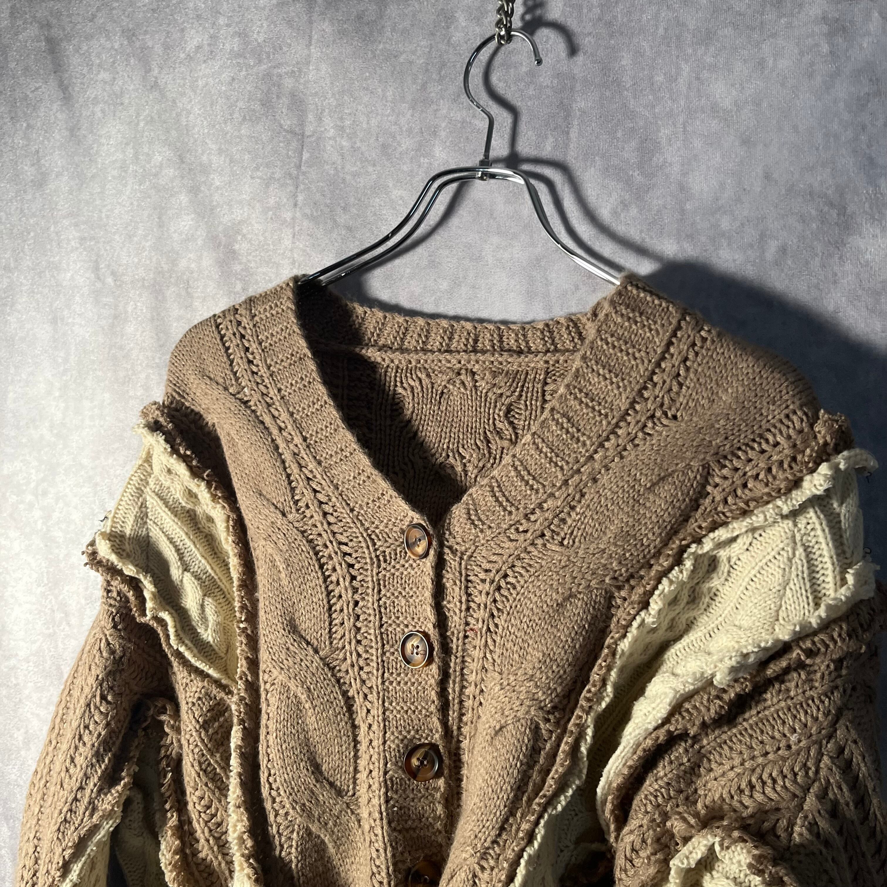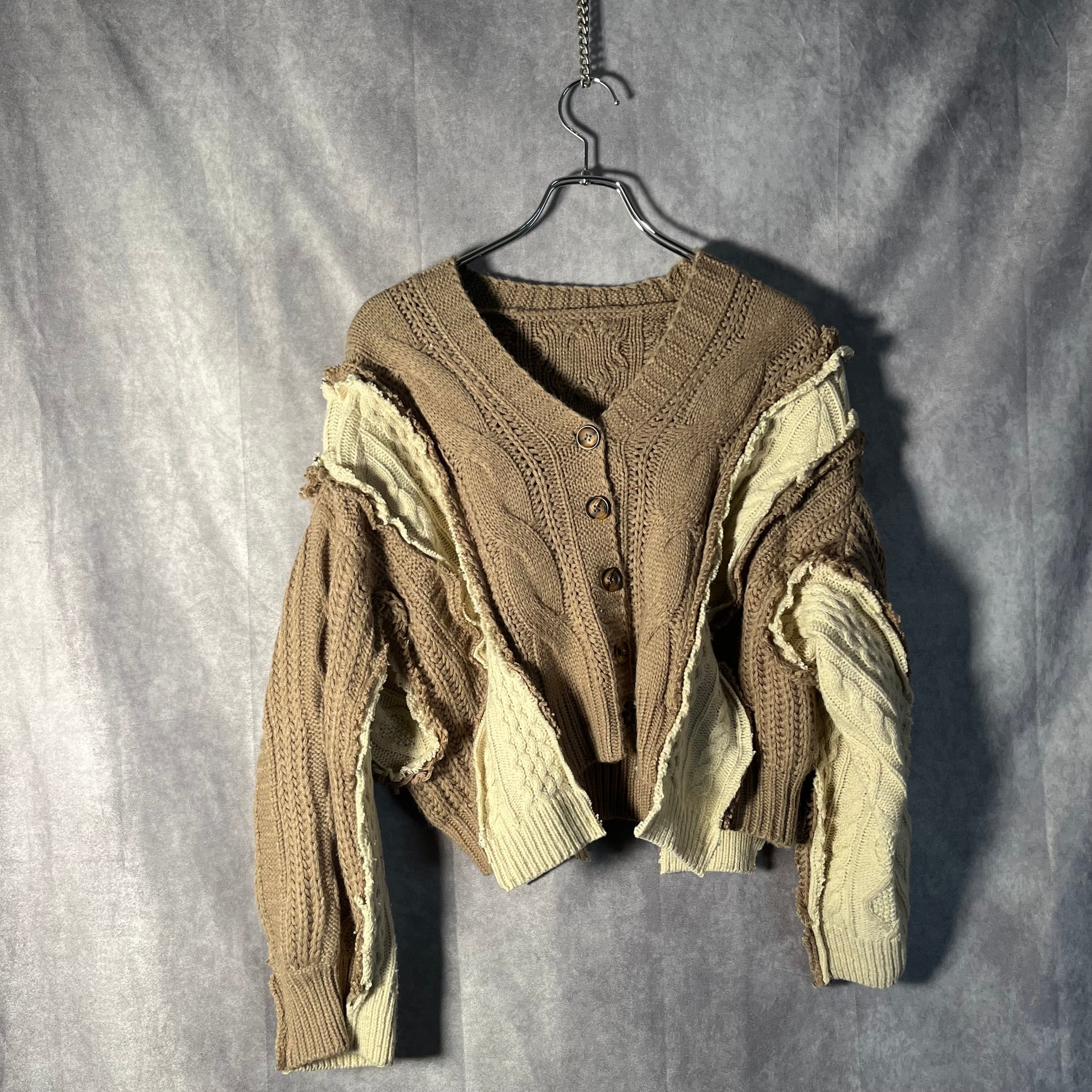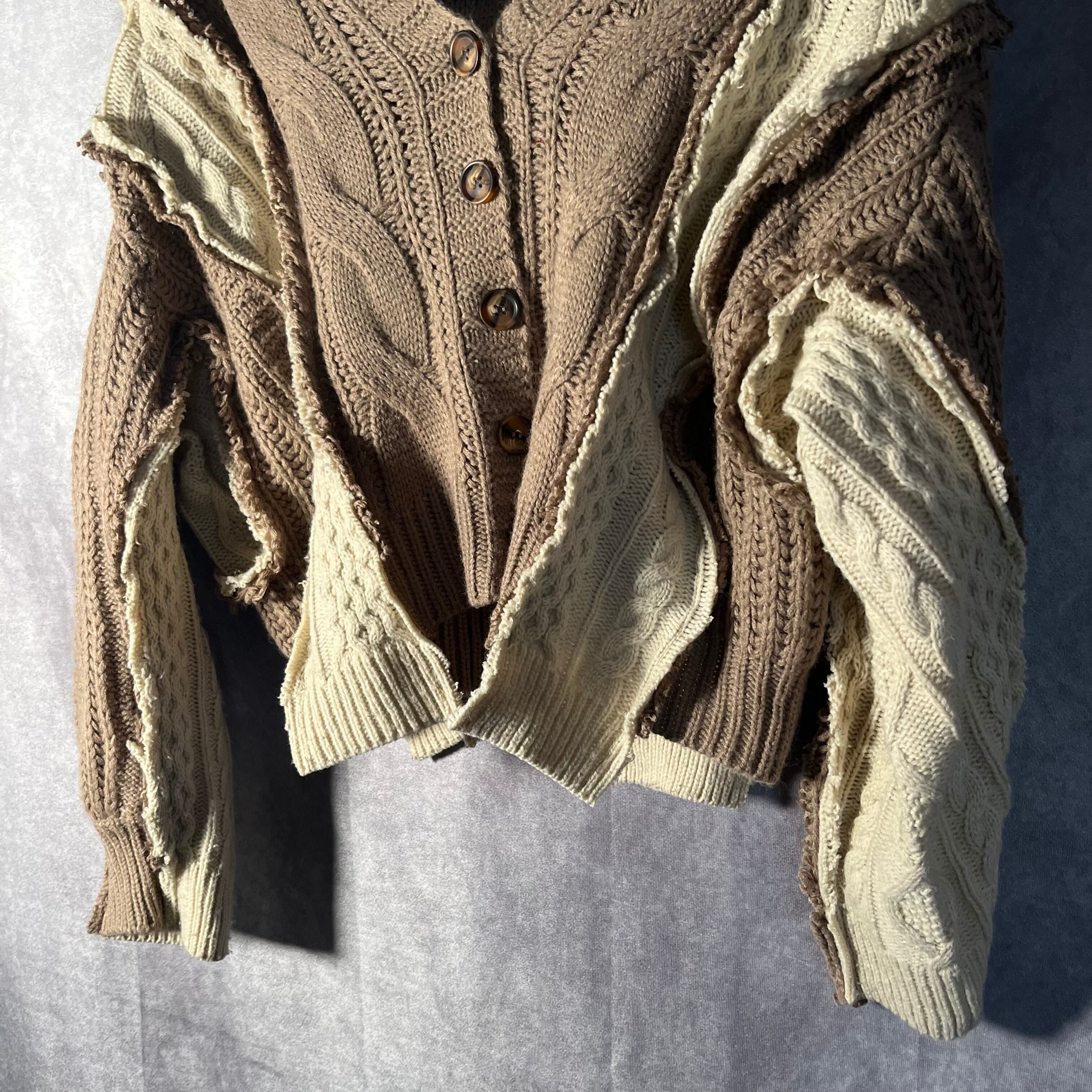 異なるニットを解体し、あえて不揃いのまま再構築した一点物。