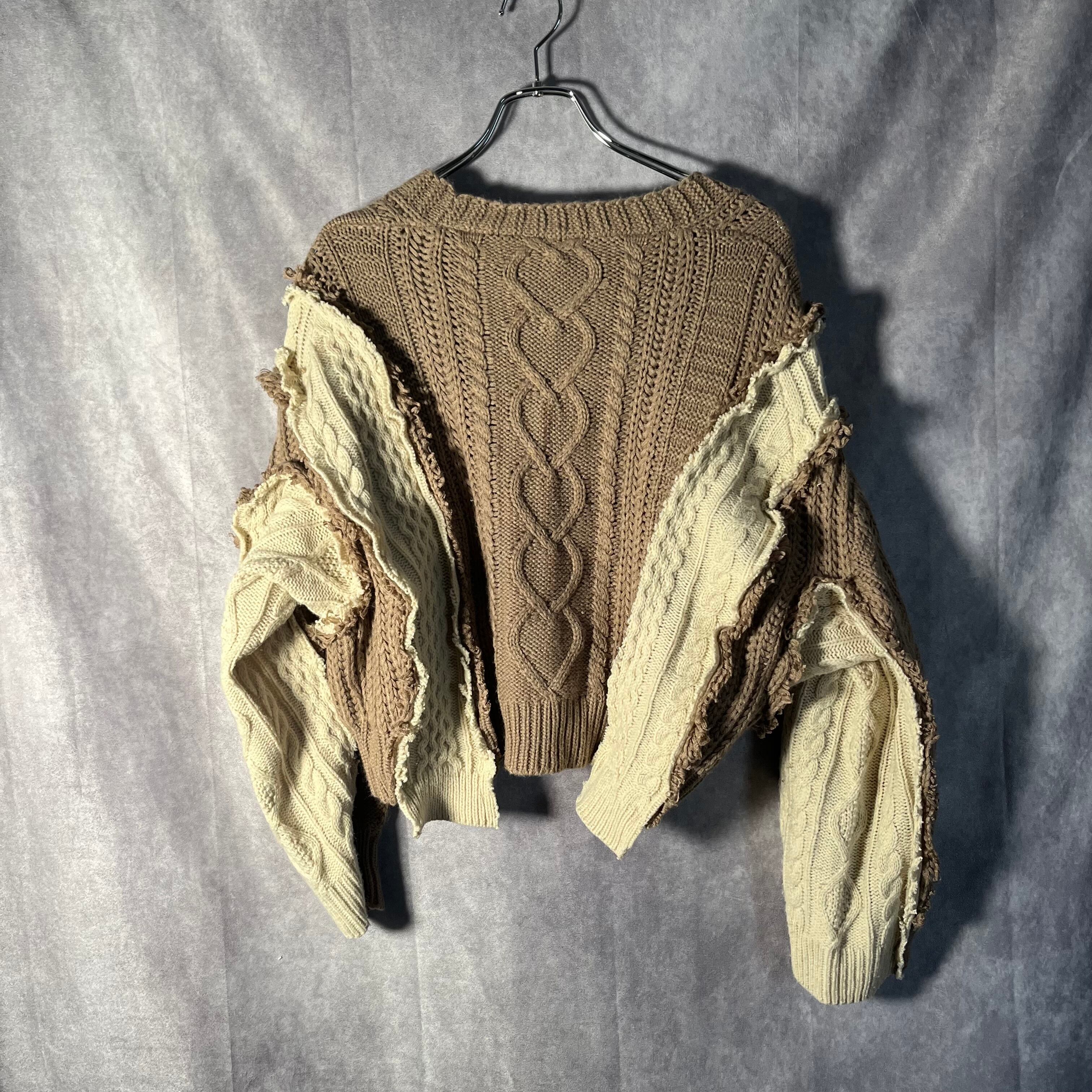 誰かの思い出をつなぎ合わせるように、新しい形として再生されたリメイクニットです。