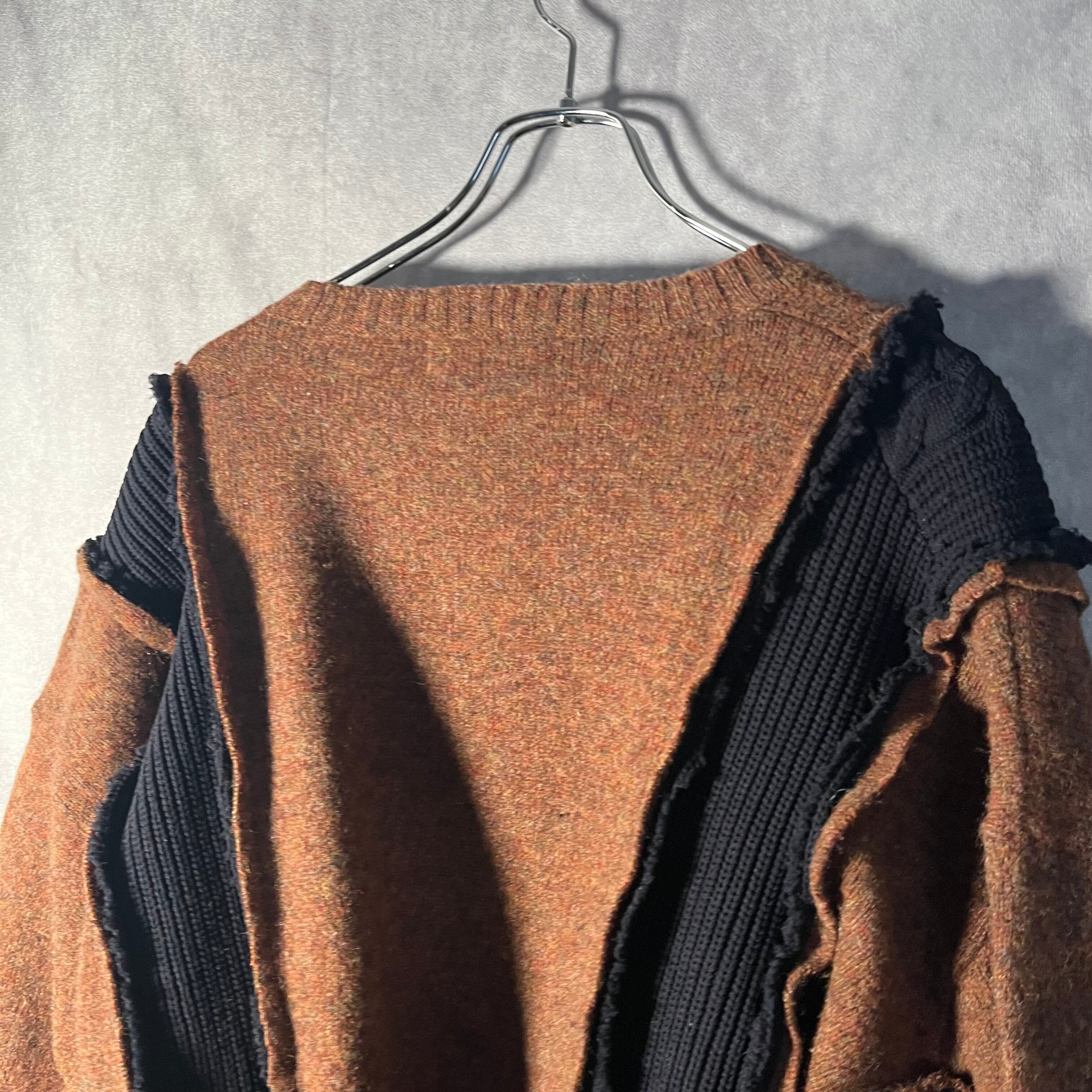 異なるニットを解体し、あえて不揃いのまま再構築した一点物。