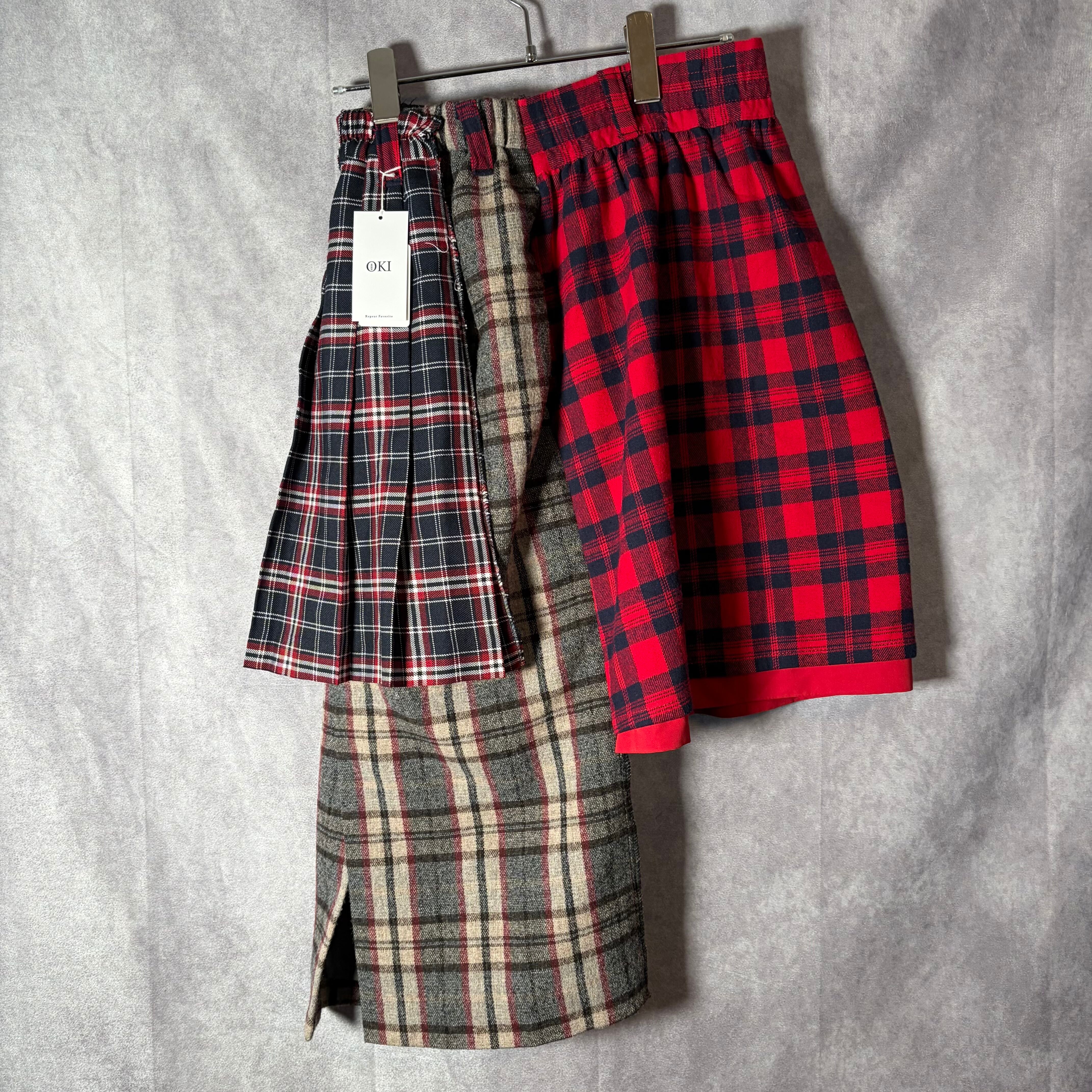 異なる表情を持つ素材を重ね合わせた、OKIのレイヤードスカート。